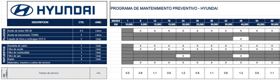 - Plan de mantenimiento prepagado para la marca Hyundai